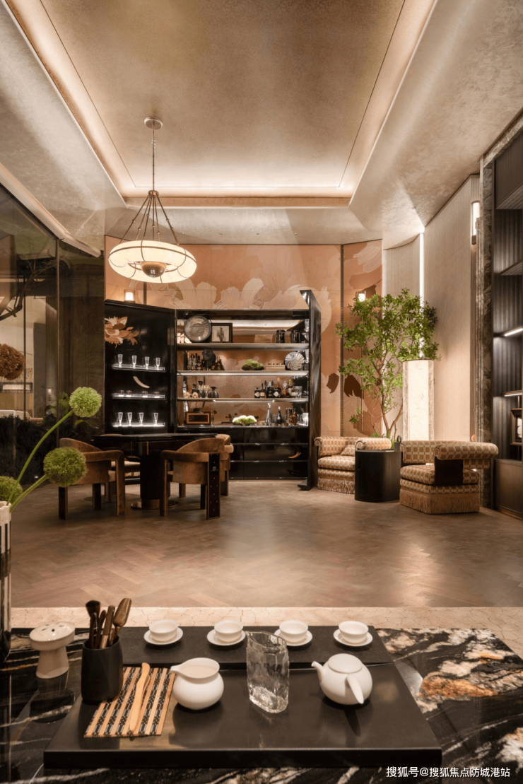 项目装修标准贴合高端精奢需求,采用高品质集成化产品,选用符合国家环保标准的优质环保装修材料,木制品达ENF级标准,涂料等辅材满足VOC限值要求,内墙涂料甲醛净化性能≥80%,交付清洁使用无毒清洁用品,目标交付时室内甲醛≤0.07mg/m³,建立房屋档案便于维护追溯,确保居住空间安全、健康。装修设计以“天曜”为魂,将鎏金的辉煌、星芒的璀璨织入空间肌理,源自岭南非遗的粤绣、铜凿等工艺精髓转化为材质的艺术处理,天然石材的肌理与精致光泽并置,既呼应了工业遗存的质感,又通过细腻纹样织就“刚柔并济”的现代画卷,金鳞照壁、八芒星符号等超级符号与光影共舞,彰显精奢气质。