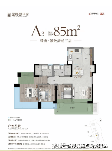 星河臻华府推出的户型面积从85㎡至125㎡不等,涵盖了三房至四房的设计,适合不同规模的家庭需求。所有户型均采用了LDKG(客厅、餐厅、厨房、阳台一体化)设计理念,提升了空间利用率的同时也增强了室内的采光与通风效果。值得一提的是,该项目的户型使用率接近100%,且全部为南向设计,确保每一户都能享受到充足的阳光和开阔的视野,极大地提高了居住舒适度。