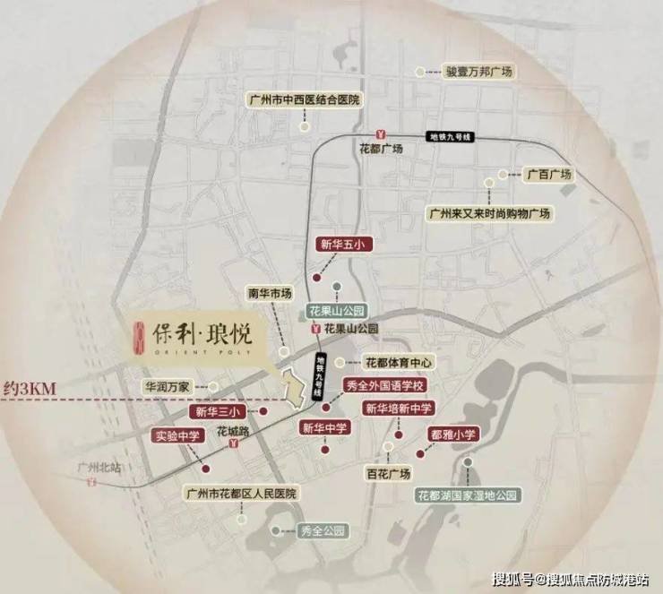 项目交通呈现“地铁枢纽+主干道”的复合优势:步行8分钟可达地铁9号线花果山公园站,2站换乘3号线直达白云新城,30分钟贯通珠江新城;规划中24号线(秀全公园站)距项目仅1公里,未来可快速连接广州北站TOD与白云机场。地面交通方面,三横(迎宾大道、云山大道、紫薇路)三纵(花城路、秀全大道、凤凰北路)路网密布,10分钟可达广州北站,20分钟融入白云新城商圈,无论是日常通勤、商务出行还是跨区休闲,均能高效抵达。这种“老城芯+双地铁”的交通配置,完美平衡了“静谧居住”与“都市效率”的双重需求。