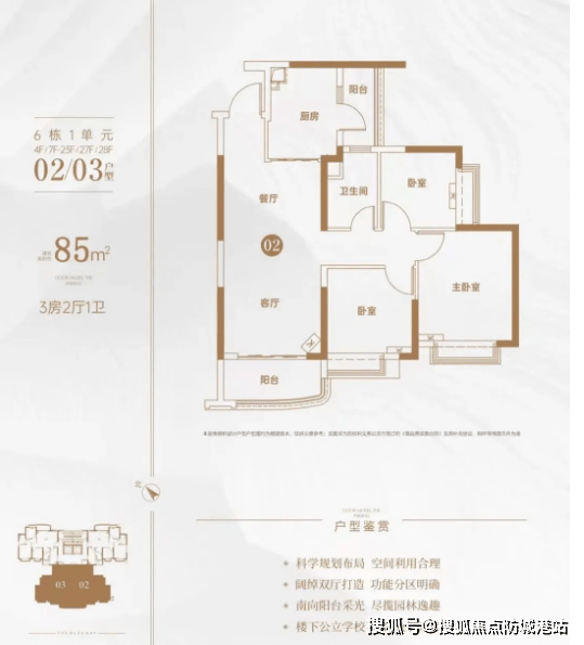 85㎡两房两厅一卫户型:该户型为刚需首选,布局紧凑合理,无浪费空间。客厅与阳台相连,阳台采光通风俱佳,可俯瞰社区园林景观;主卧与次卧空间宽敞,采光充足,能满足日常居住需求;厨房采用U型布局,操作空间充足,方便日常烹饪;卫生间干湿分离设计,提升使用舒适度。整体户型适合小家庭或新婚夫妇居住,性价比极高。