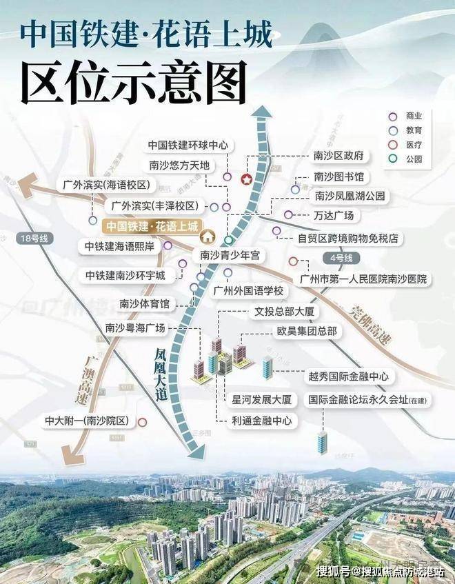 位置上,花语上城坐在南沙发展中轴凤凰大道的黄金节点。北接庆盛,南连明珠湾,东望南沙湾,西通黄阁,属于典型的“左牵繁华、右牵未来”。凤凰大道串起了蕉门、明珠湾、南沙枢纽、万顷沙等南沙未来几年的重磅板块,沿线政务中心、凤凰广场A塔(南沙目前最高写字楼)、多个重点项目都在这条轴上。开车5分钟可接驳蕉门地铁站,10分钟左右到横沥站,虽然不是地铁口物业,但日常通勤接驳不算太吃力。未来如果广州地铁15号线规划落地,环宇城东南侧有望设站,区域的轨道交通能级还会再上一个台阶。