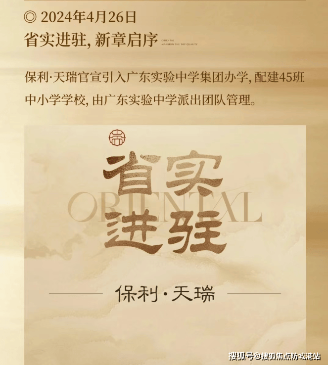 保利天瑞配建了一所18班的幼儿园和一所45班的九年制学校,将引入广东实验中学教育集团办学,为业主子女提供了家门口的优质教育资源。省实派出团队管理学校,确保教学质量。