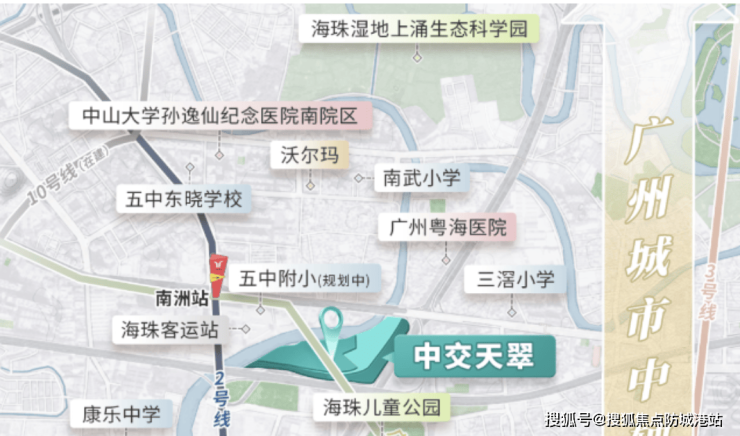 中交·天翠位于海珠区核心中轴位置,是广州城央罕见的大型滨江住宅项目。项目以高端刚改家庭为主要客户群,规划七栋46至48层超高层住宅楼,兼顾居住舒适性和空间利用率。住宅户型覆盖90至140平方米,适合家庭居住。项目强调生活体验和景观价值,依托周边海珠儿童公园、海珠湖公园和海珠湿地等自然资源,将城市精英居住需求与公园景观生活完美结合,成为海珠区代表性的城市封面住宅。
