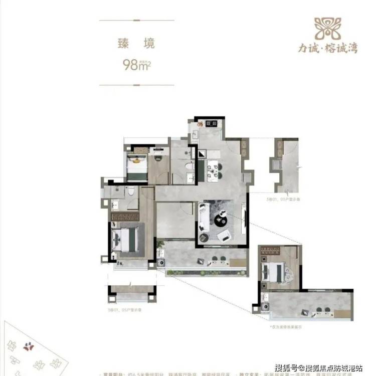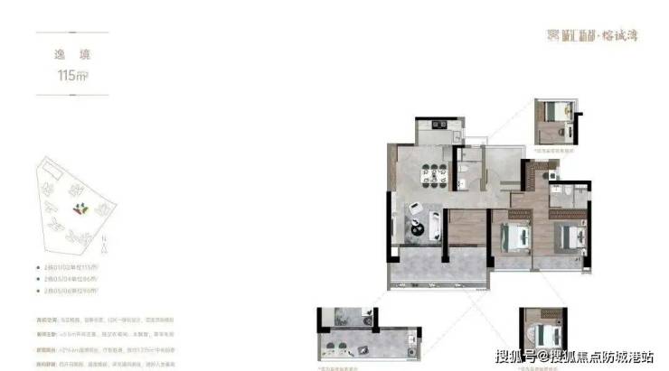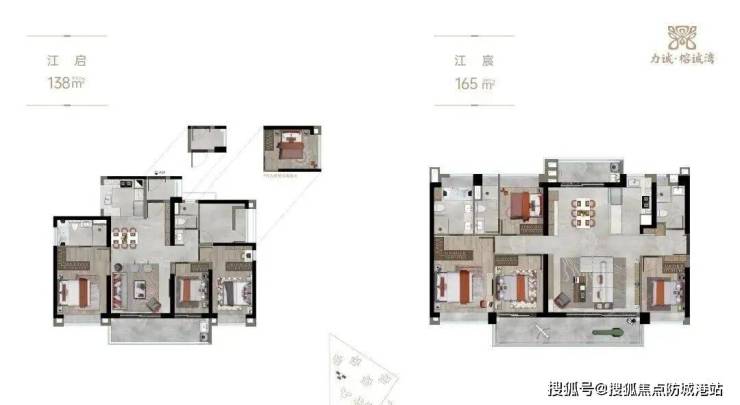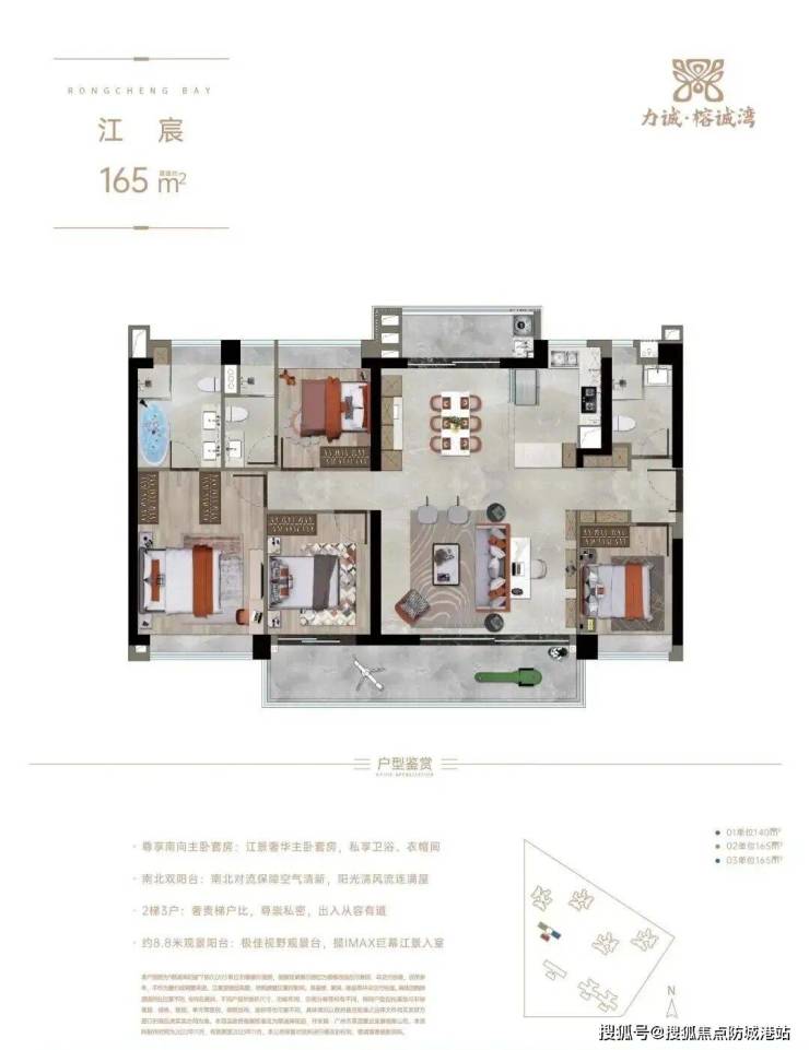 【户型】约85-98㎡瞰江望园三房;约138-165㎡全智能江景四房