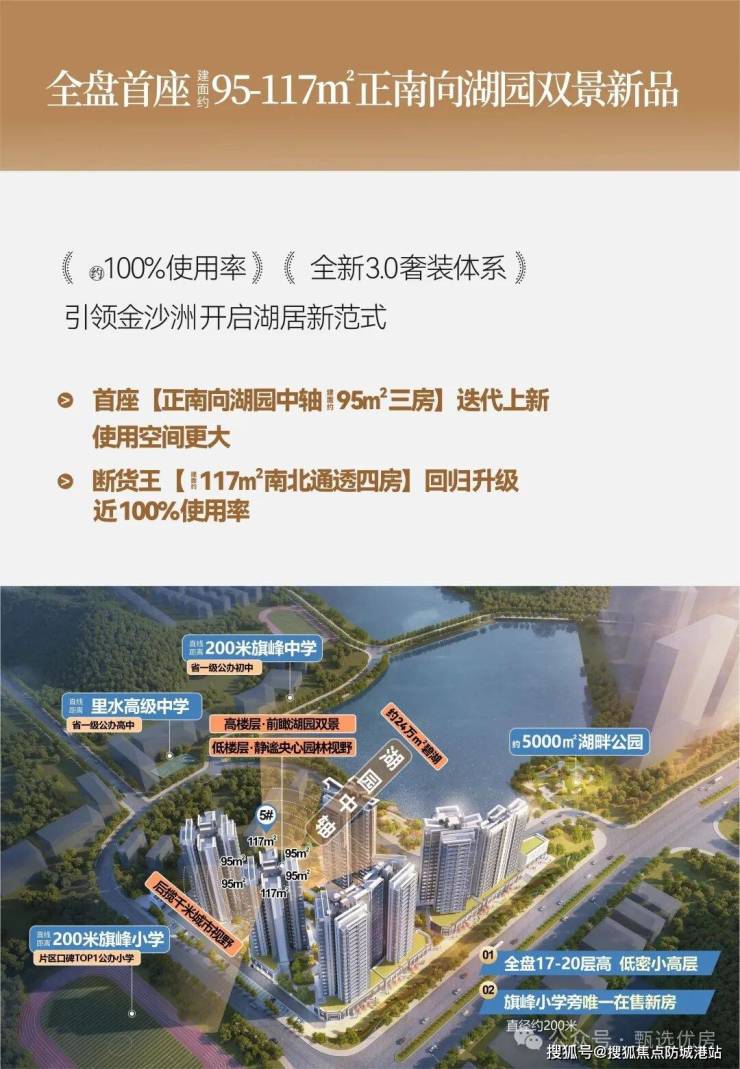 【2T3湖景板楼:建面约133㎡湖畔低密小高层】金沙洲惟一的2梯3户全湖景板楼,仅17层层高,低密舒适的改善型大四房