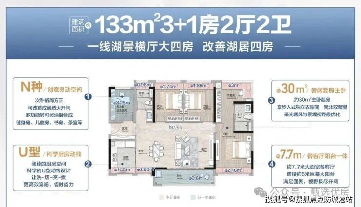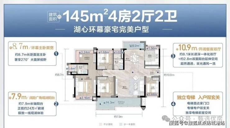 💡湖心环幕大四房,建面约145㎡四房两厅两卫