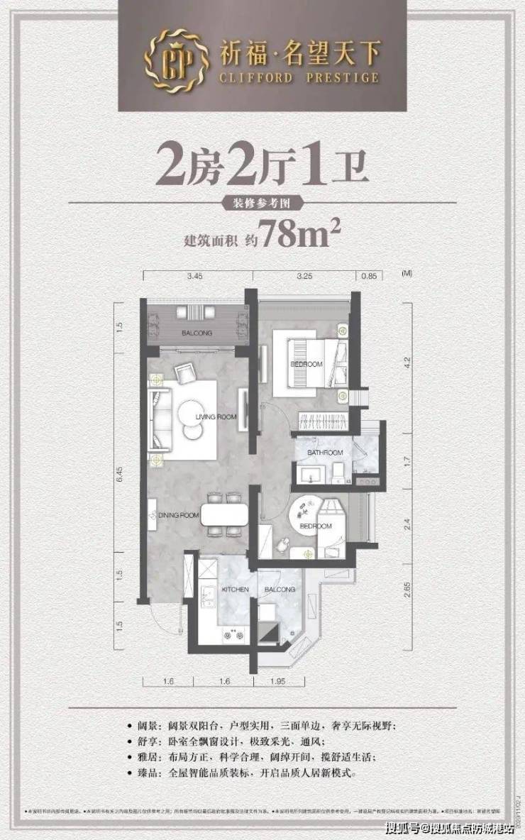祈福名望天下占地约5万平方米,由五栋超高层建筑组成。项目旨在通过其独特的点式布局和风车型设计,实现每户南北对流、三面单边的最佳居住环境。户型范围从78平方米至222平方米不等,覆盖了从两房到五房的多种选择,满足不同家庭结构的需求。此外,所有住宅均采用国际品牌豪华交标,致力于打造智能化健康人居的典范。