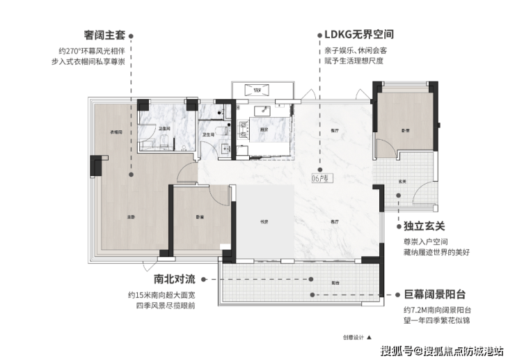 约6.4米超大阳台设计,无论做成绘画区、读书区,又或是改成布满繁花绿植的私家花园,都是不错的选择。