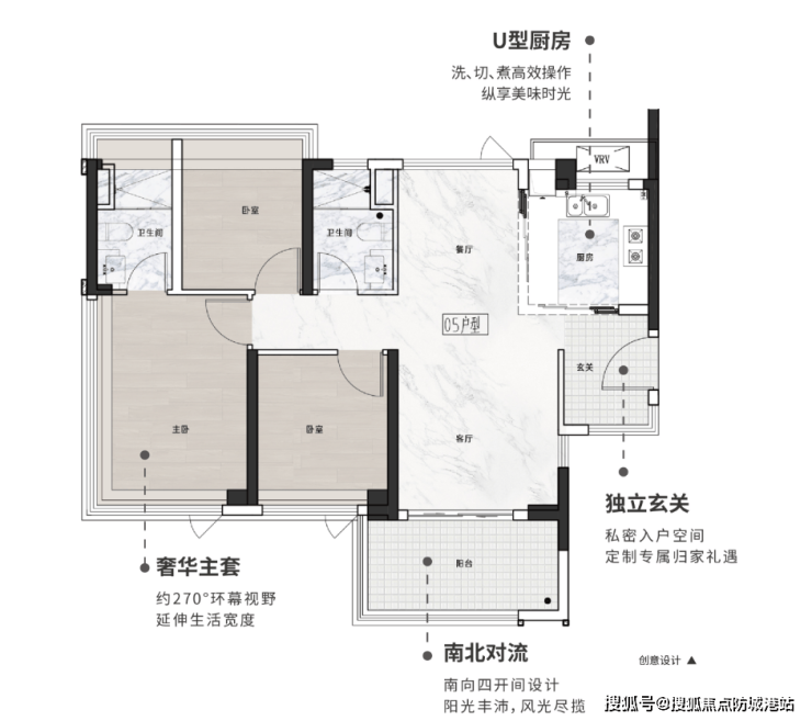 该户型同样拥有独立玄关,豪华主套全明通透,户型舒适性极强。
