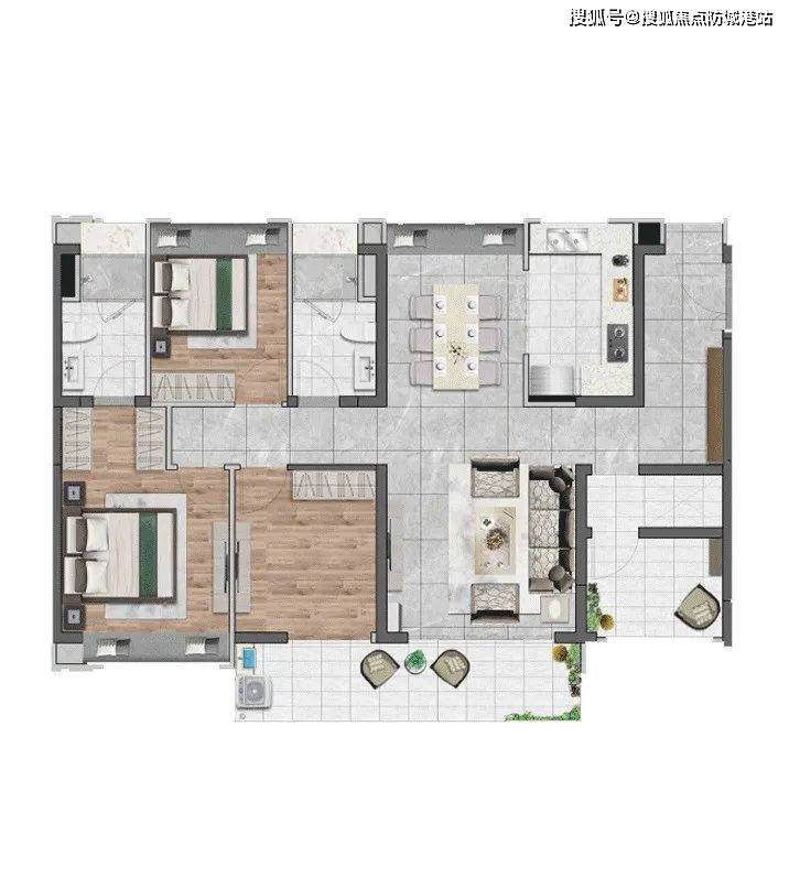这次示范区展示建面约140㎡3+1房户型,力求优质舒适的居住感受,以三房的进阶实现三代同堂。