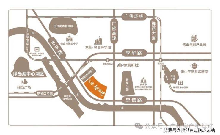 • 双地铁交汇+一站换乘广佛环线 :距2号线智慧新城站直线距离约500米,还有地铁4号线(在建中)、广佛环线(已运营),可迅达广佛。
