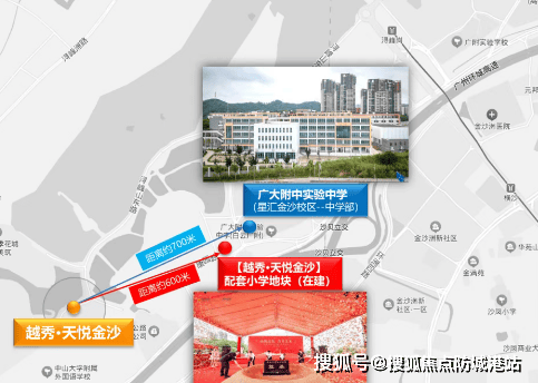 项目内配建了一所18班幼儿园和一所30班小学,并引入了白云广附金悦实验小学,实现了从幼儿园到中学的一站式教育体系。金广附的历年中考成绩优异,是家长选择金沙洲的重要因素之一。