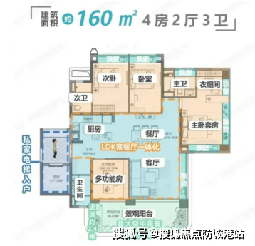 顺应广州最新住宅设计规范,长岭雅居以“新规户型”重构空间价值。主力产品建面约160–230㎡,采用三梯三户或四梯三户布局,兼顾私密性与效率。得益于精细化设计,项目使用率高达97%–100%,远超市场平均水平。室内空间强调功能融合与景观渗透,LDK客餐厨一体化设计增强家庭互动,大面积落地窗与空中花园最大化引入山景与园景,真正实现“住在公园里”。
