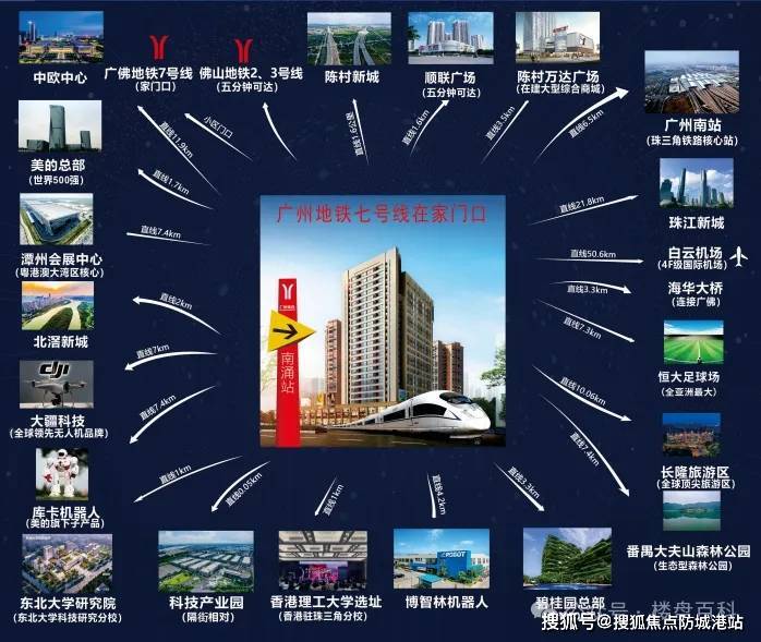 项目距离广佛地铁 7 号线南涌站 A 出口仅 5 米,是名副其实的地铁上盖物业。乘坐 7 号线,5 站直达广州南站(全国核心交通枢纽,衔接高铁、地铁、城际铁路),8 站可达长隆旅游度假区,30 分钟直达珠江新城(广州 CBD 核心),无缝衔接广州核心商圈,通勤、出行高效便捷。对于在广州工作的购房者来说,无需自驾堵车,每天多睡 30 分钟,轻松实现 “地铁通勤,双城生活”。