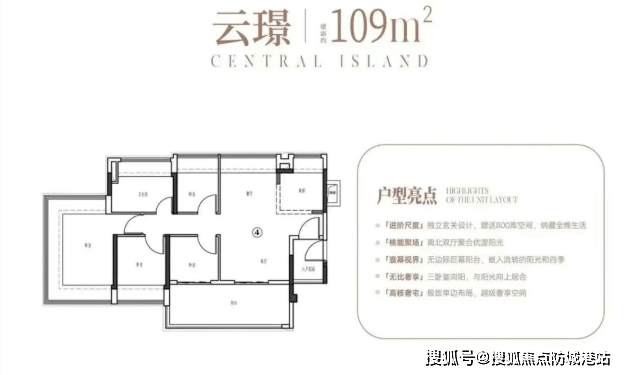 109㎡四房二卫:空间感进一步升级,客厅开间更大,阳台更宽敞,居住舒适度显著提升。
