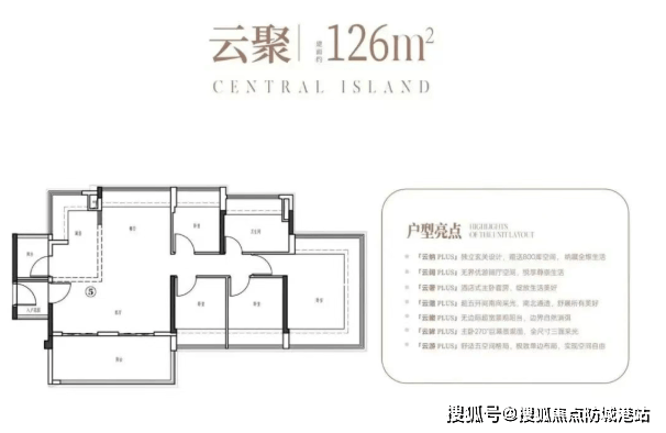 126㎡四房二卫:作为项目的楼王户型,拥有极致的景观视野和奢阔的空间尺度,主卧套房设计更是彰显了主人的尊贵身份。