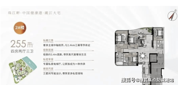细节处理彰显品质,“殿堂级”10.2米入户大堂气势恢宏,酒店式地下候车区设计尊崇,归家仪式感拉满;星环私人会所的规划为业主提供高端社交空间,彰显圈层品位。户型设计融入高阶美学,LDKG一体化设计让空间更显开阔,3.4-3.6米极致层高提升居住舒适度,全系国际一线品牌交标兼顾美观与实用。这种将现代工艺与江景资源结合的设计,既符合当下高端人群对“简约奢华”的审美追求,又以尊重自然的态度融入江岸线,成为白鹅潭滨江带兼具美学价值与居住舒适度的建筑地标。