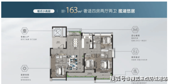 超高层141㎡四房户型:该户型为阔境四房设计,南北通透,视野开阔。客厅大面宽设计,连接观景阳台,可欣赏湖山景观;主卧套间配备独立卫浴和步入式衣帽间,彰显品质生活;三个次卧空间宽敞,功能齐全;厨房采用开放式设计,与餐厅、客厅相连,增强了空间的互动性。