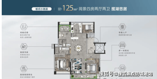小高层125㎡四房户型:该户型为绝版南向板式设计,南北通透,通风采光效果极佳。客厅开间宽敞,与餐厅相连,形成开阔的公共活动空间;四个房间布局合理,主卧套间设计,配备独立卫浴和观景飘窗,尽享舒适生活;其余三个次卧均可满足日常居住需求,适合二胎家庭或三代同堂居住;厨房紧邻餐厅,动线合理,方便用餐和收拾。