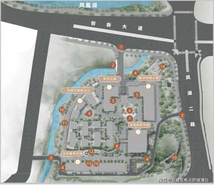 2、园区景观:园区规划有街角公园、景观桥、下沉广场、林荫小隅、滨水主题街区、空中泳池、环岛水景、活力自在Park等八大景观。