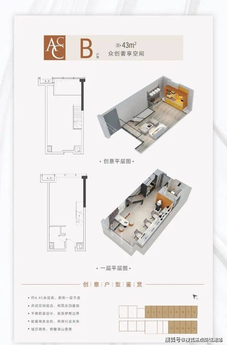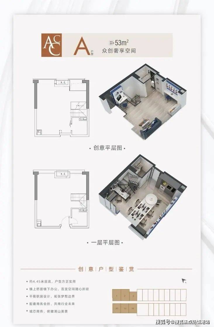 1、约4.45米层高,空间灵活百变,楼上舒居楼下办公,俯瞰湖山美景。