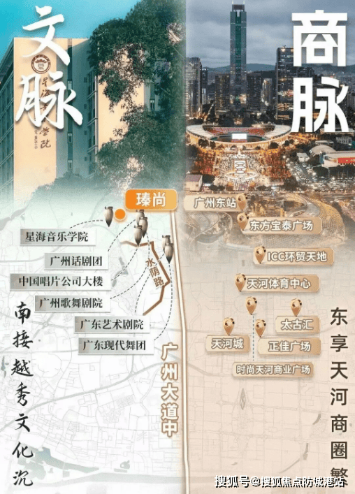 项目坐落于天河区先烈东横路38号,地处越秀与天河交界处,一面紧邻天河CBD的财富脉搏,一面浸润水荫路百年文化艺术底蕴。这里不仅是广州城市发展的地理中轴,更是精神文化的高地——短短1公里的水荫路,汇聚广州歌舞剧院、广州话剧团、星海音乐学院、中国唱片公司大楼等数十家文化机构,被誉为“广州文艺发源地”。这种不可复制的历史文脉,赋予瑧尚超越物理空间的精神价值。