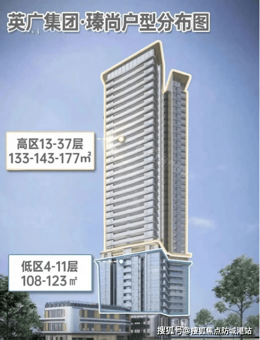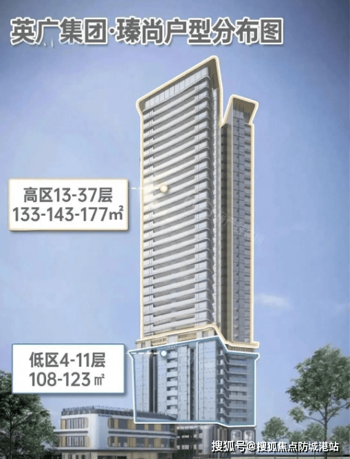 高区(13–37层):144户,主推133–143–177㎡四房大平层,专为塔尖改善家庭定制。