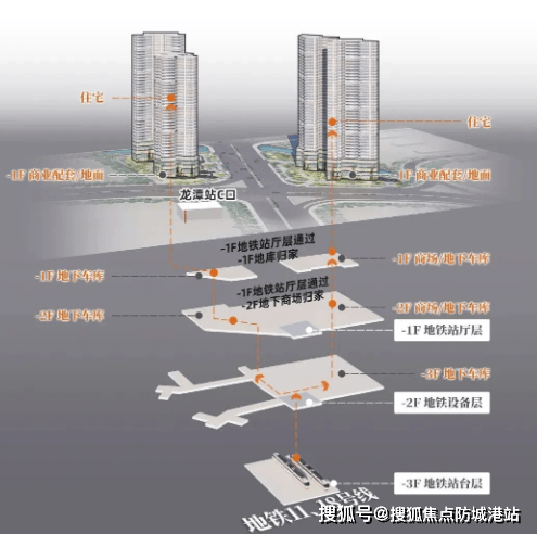 项目为双地铁上盖 TOD 社区,楼下即为 11 号线与 18 号线龙潭站,地铁连廊直达社区,11 号线为广州大环线,18 号线为湾区高速地铁,出行便捷。