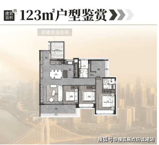 项目主力在售建面约 123㎡4+1 房、131㎡改善型户型,户型设计合理,景观与采光效果优异,满足改善型家庭需求。
