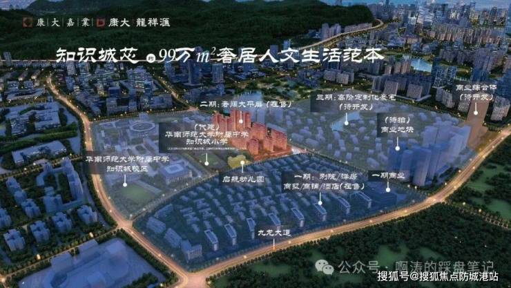 康大龙祥汇项目,正是矗立在这一宏大国家战略背景下的标杆之作。它雄踞知识城最核心地段,不仅占据了物理空间的制高点,更占据了城市发展的时间轴与价值轴。在“十四五”规划及粤港澳大湾区建设的宏观蓝图下,知识城被赋予了“三集群两高地”的产业布局,即聚焦新一代信息技术、生命健康、新能源等战略性新兴产业,打造知识创造与科技创新核、高品质滨水城区。这种高起点的规划,使得知识城成为了汇聚全球顶尖人才、前沿技术与高端资本的磁场。