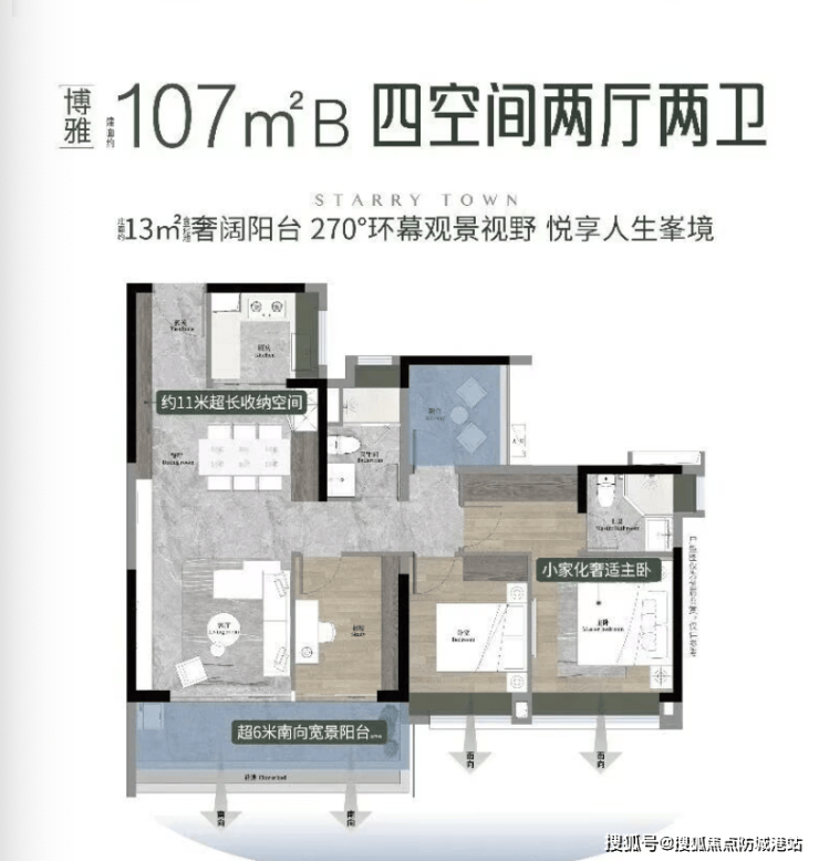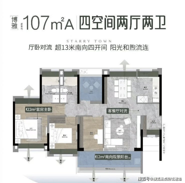 二、107㎡南向对流四房两厅两卫:改善爆款,4.5 开间朝南,双面宽阳台