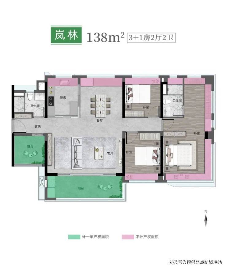138㎡ 3+1房两卫:超豪华户型,拥有约6.1米南向大阳台,南北对流,提供顶级居住体验。