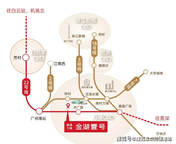 首先,让我们把目光投向那条被誉为“广州最速地铁”的22号线。这条线路的设计时速高达160公里,远超普通地铁的80公里时速,真正实现了“地铁里的高铁”体验。对于居住在敏捷·万博金湖壹号的业主来说,22号线意味着什么?意味着你可以用极短的时间穿梭于广州的各个核心区域。从市广路站出发,仅需数站即可直达广州南站,轻松衔接高铁,实现广佛同城乃至大湾区内的快速流动。往北,可直达白鹅潭商圈,这里是广州西部发展的新引擎;往东,可一站换乘18号线,瞬间抵达珠江新城、琶洲、金融城等核心产业带。想象一下,早上在金山湖畔的微风中醒来,乘坐22号线,半小时后就能坐在珠江新城的写字楼里开启一天的工作,这种通勤效率,是传统交通方式无法比拟的。