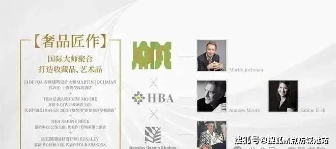全球顶级建筑设计机构:JADE&QA(上海世茂深坑酒店、迪拜的 Jumeira Beach Hotel)全球顶级室内设计机构:HBA设计(苏州莱佛士酒店、成都费尔蒙酒店、河内洲际酒店、印尼洲际酒店等超是个五星级酒店设计)