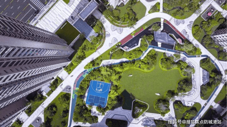 项目围合式布局,60-80米超大楼间距,每个地块均规划了中央大花园,小区场地全抬高约2.5-2.7米;雨水花园及大面积的透水铺装设计,构筑一个真正的海绵小区。