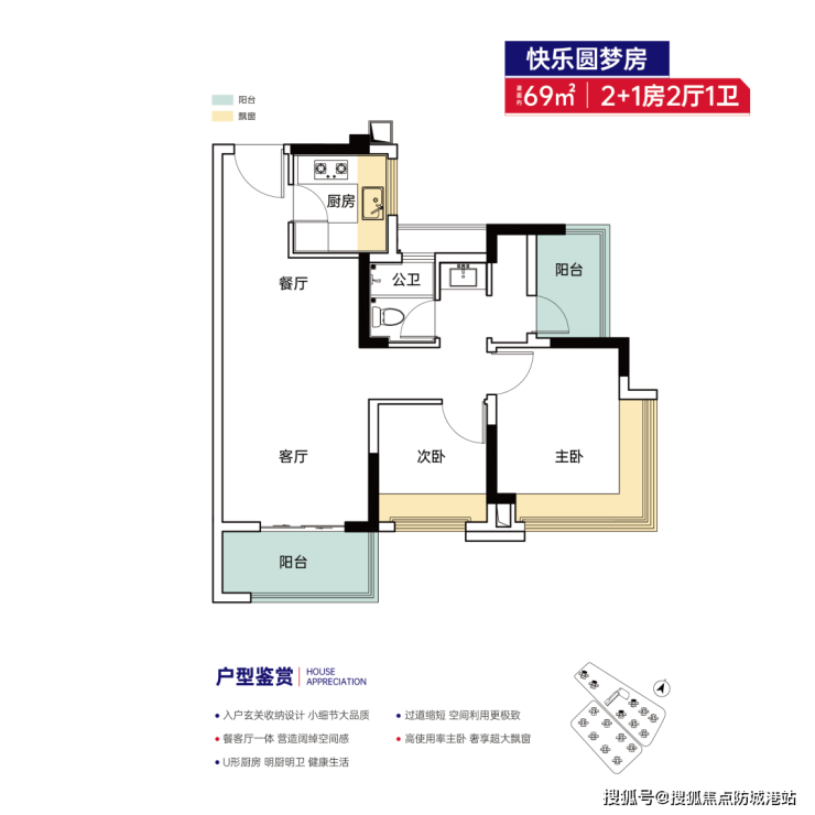 69㎡2+1房