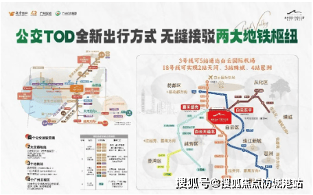 公交TOD模式: 小区门口设有公交TOD,业主可以通过电梯直达楼下公交站,实现无缝接驳2号线、3号线、14号线及18号线北延段,快速抵达广州主城中心区域。