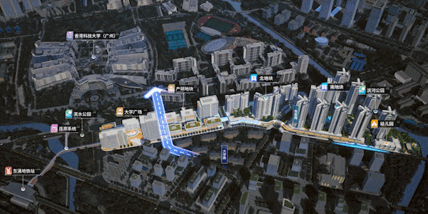 项目紧邻香港科技大学(广州),步行 5 分钟可达校区,业主可共享学校图书馆、体育馆、学术交流中心等配套;周边 3KM 内有庆盛 AI 产业园、南沙国际科创中心等产业载体,预计 2026 年全面运营,业主步行或短车程即可实现 “工作 + 居住 + 学习” 无缝衔接,匹配科创人才 “产学研居” 一体化需求。