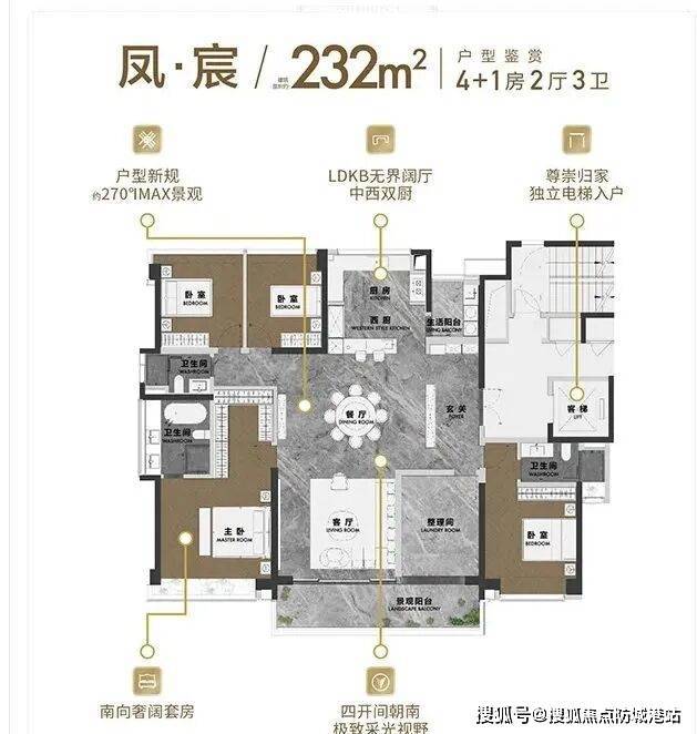 主推约153 - 232㎡的大平层户型,专梯专户设计,彰显尊崇归家体验。约18m南向采光面,让阳光肆意倾洒室内;约270°IMAX无界景观,窗外美景尽收眼底;约99%的户型实用率,空间利用率极高,为业主营造宽敞舒适且高效的居住空间。