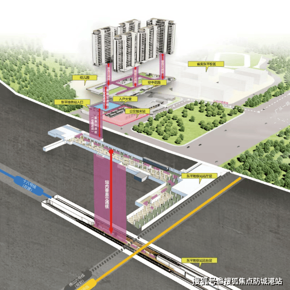 作为广州地铁地产独立操盘的精品项目之一,云庐充分展现了其在TOD综合开发领域的深厚积淀。项目紧邻地铁14号线白云东平站,步行仅约150米,真正实现“出站即归家”的便捷体验。更值得期待的是,未来这里将成为14号线、18号线北延段(广花城际)及规划中的佛山6号线三线换乘枢纽,构建起高效通勤网络。