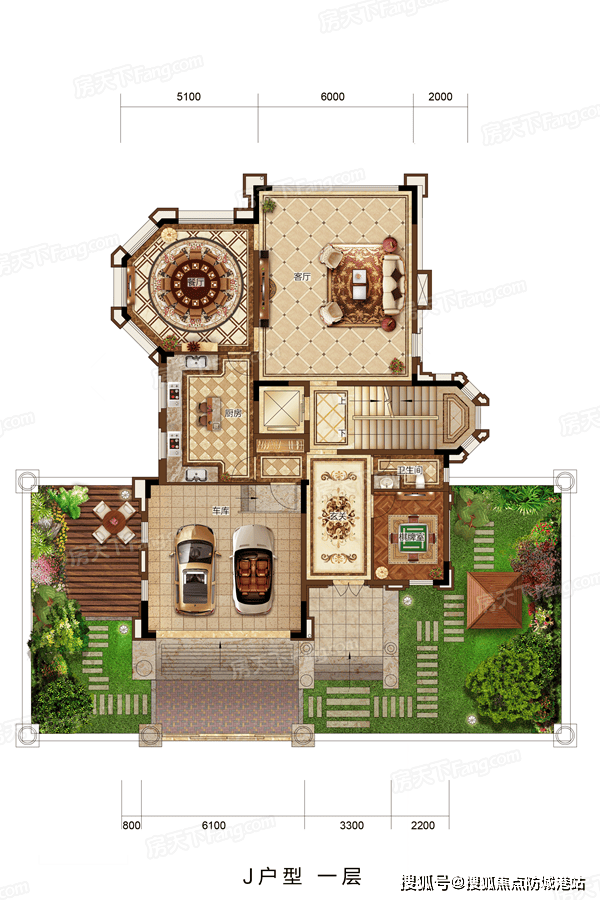 花园面积:631-897㎡赠送面积:759-1297㎡