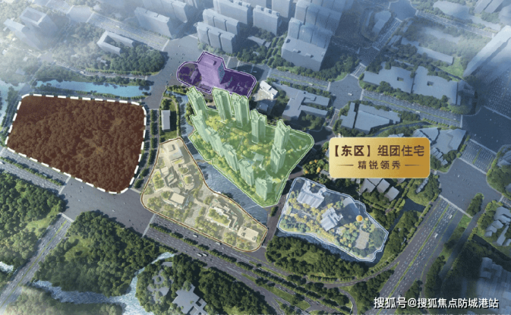 东区:本次主推住宅组团,临近地铁、商业、滨水景观,居住纯粹无杂音