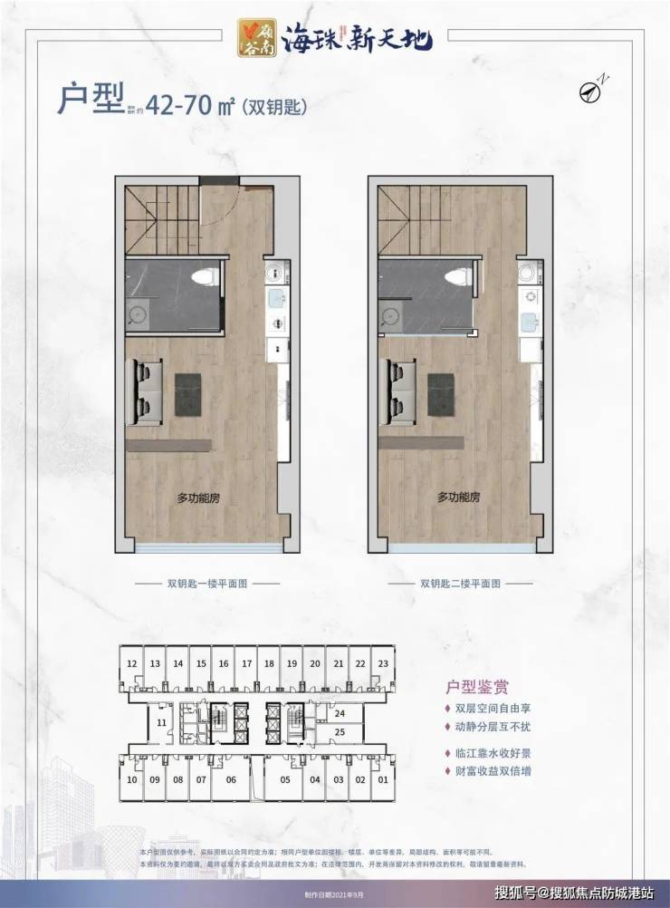 有双钥匙创变空间,得一享二,功能齐全,动静分层;还有阔景中空三房,舒适度高,推窗揽江,悦享中空阔绰客厅。