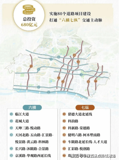 板块发展更迎来十五届全运会的重磅加持。历史经验表明,六运会推动天河 CBD 崛起,亚运会成就珠江新城华南首席 CBD,而即将开幕的十五运落子奥体,正推动奥体板块迎来新一轮基建热潮。总投资 680 亿元的 80 个道路项目建设正在推进,“六横七纵” 交通主动脉逐步成型,板块价值迎来质的飞跃。