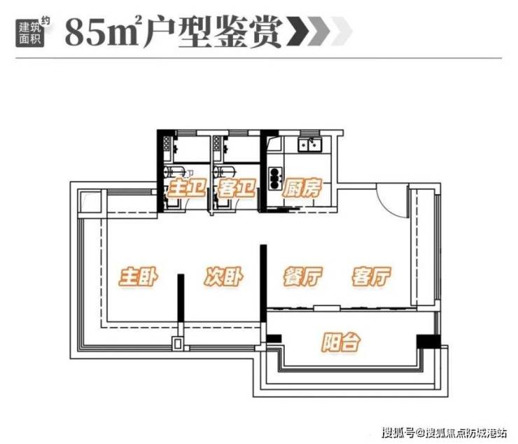 除了71㎡三房,项目还有85㎡三房户型,同样是刚需家庭的优质选择。该户型可拓展6米巨幕阳台,围炉煮茶、阅读赏景,轻松切换多种休闲模式;LDKB生活秀场设计,自由切换派对、健身、亲子模式,满足年轻人的多元需求,无论是朋友聚会还是亲子互动,都有足够的空间。