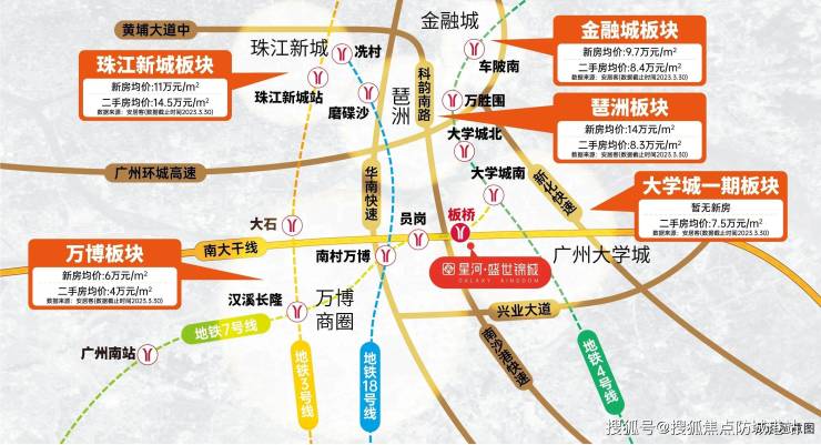 星河·盛世锦城位于番禺区万博与国际创新城之间,紧邻南大干线和地铁7号线板桥站,出行便捷。项目地处珠三角的黄金经济带,汇聚多个高薪技术产业园区,如希音、欢聚时代、迪士普等企业,为区域经济提供强劲动力。依托广州南站这一交通枢纽,便捷的交通网络不仅让您轻松通勤,还能快速到达珠江新城、琶洲等广州核心区域,享受繁华都市的便捷与舒适。