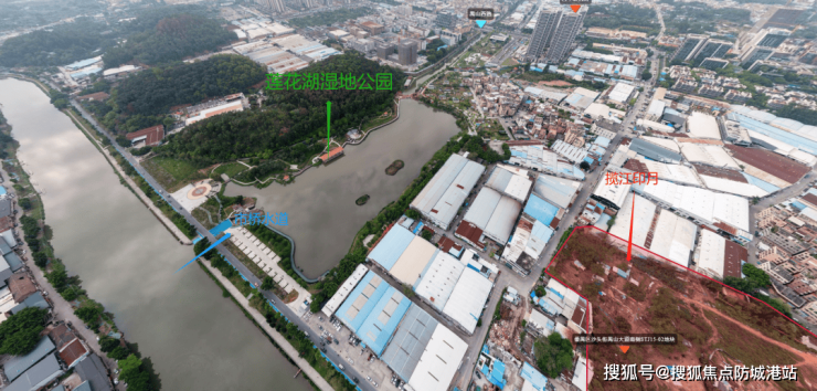 项目位于番禺市桥板块,临市桥水道,西面是莲湖湿地公园。