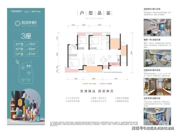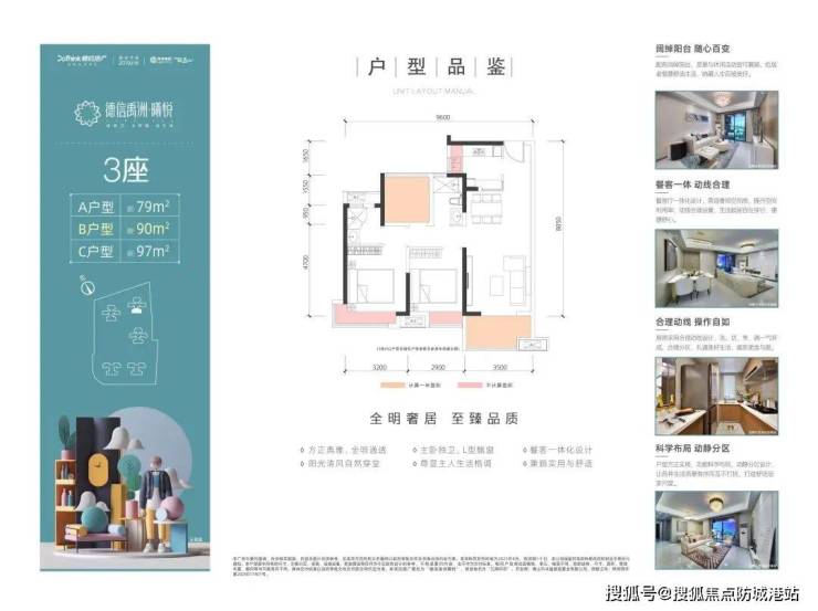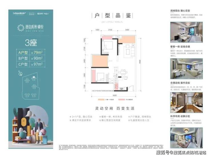 产品户型涵盖79-99㎡三至四房刚需户型,入户门槛低,空间赠送比例超12%,户型得房率超83%;项目容积率仅2.5,居住舒适性极高。