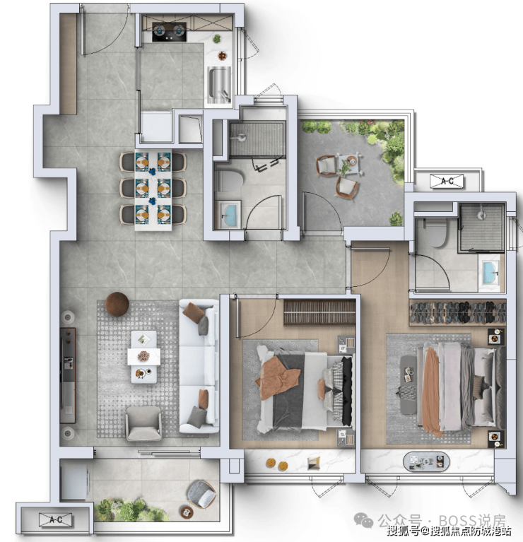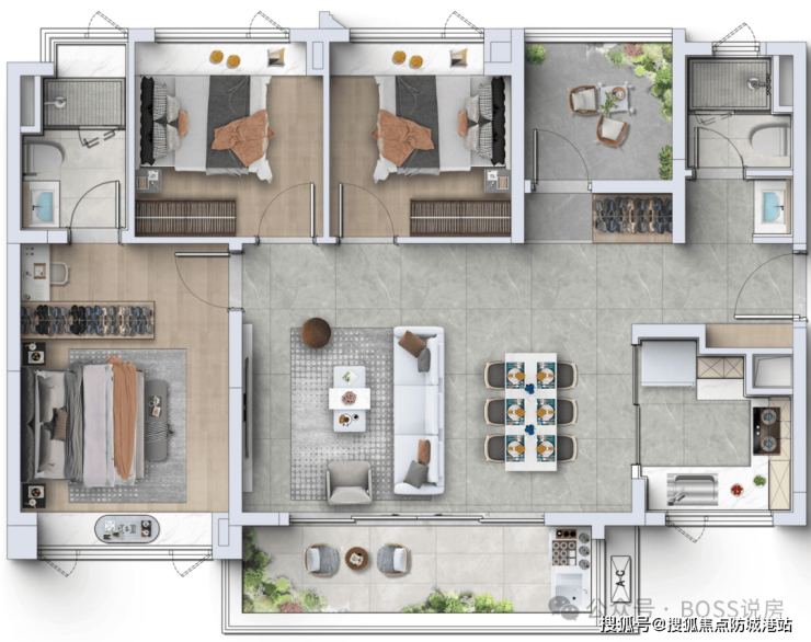 88㎡三房两厅两卫(清盘):经典刚需户型,南向开间,全明通透,双卫设计(同面积段罕见),主卧套房带独立卫浴,客厅连接阔景阳台,得房率约 85%,总价约 280 万起,目前仅剩少量尾货,基本清盘。