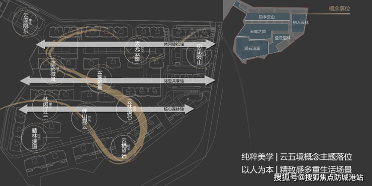 合生帝景山庄虽不临江,但其园林景致与自然环境的融合堪称一绝,营造出堪比临江居所的静谧与诗意。项目作为天河唯一原生态坡地别墅社区,依托27米的地形高差,打造出三阶台地空间,形成错落有致的天际线。两条南北贯通的景观廊道将社区划分为三个分区,园内以“行韵缦云·隐介藏境”为设计理念,构建了三条景观归家轴线、五个云中之境与十个精致生活花园,让园林景致无处不在。